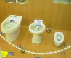 力士用の便器、普通の便器、子供用便器が並んでいます。