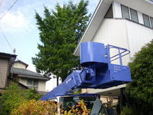 今朝から仙台市青葉区の住宅地で、庭木の伐採をしています。