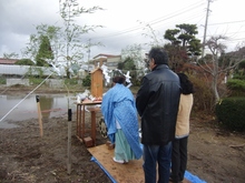 強風の中、地鎮祭(遠田郡)