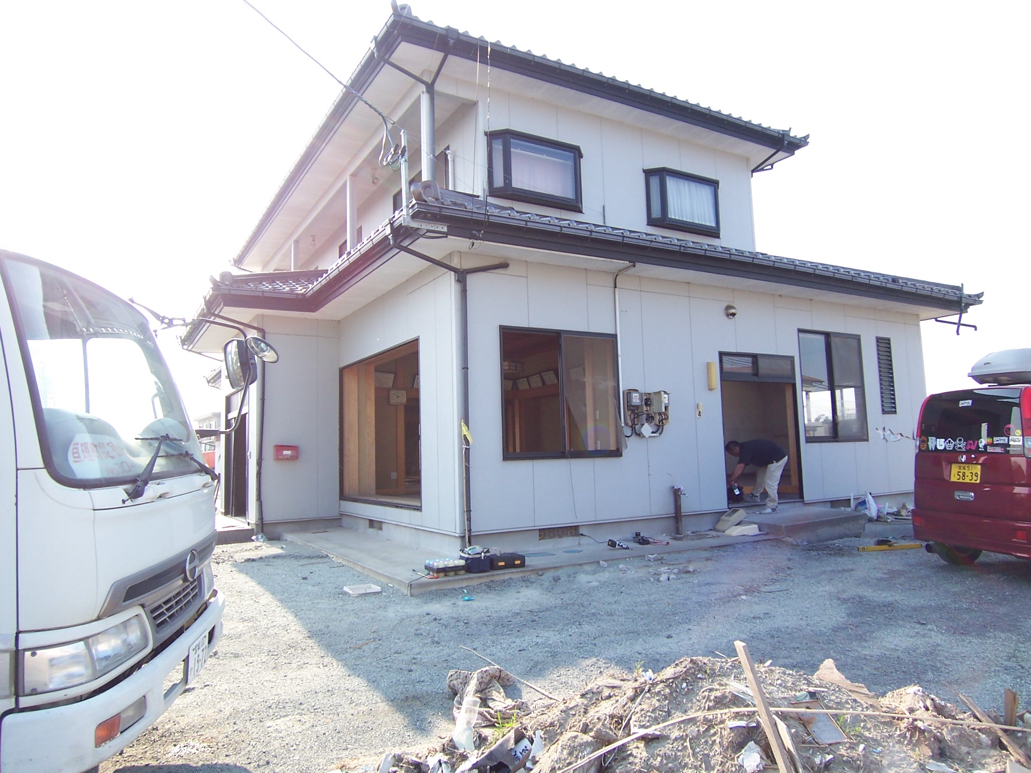 津波被害をうけた亘理町荒浜の住宅で、工事に着手しました。