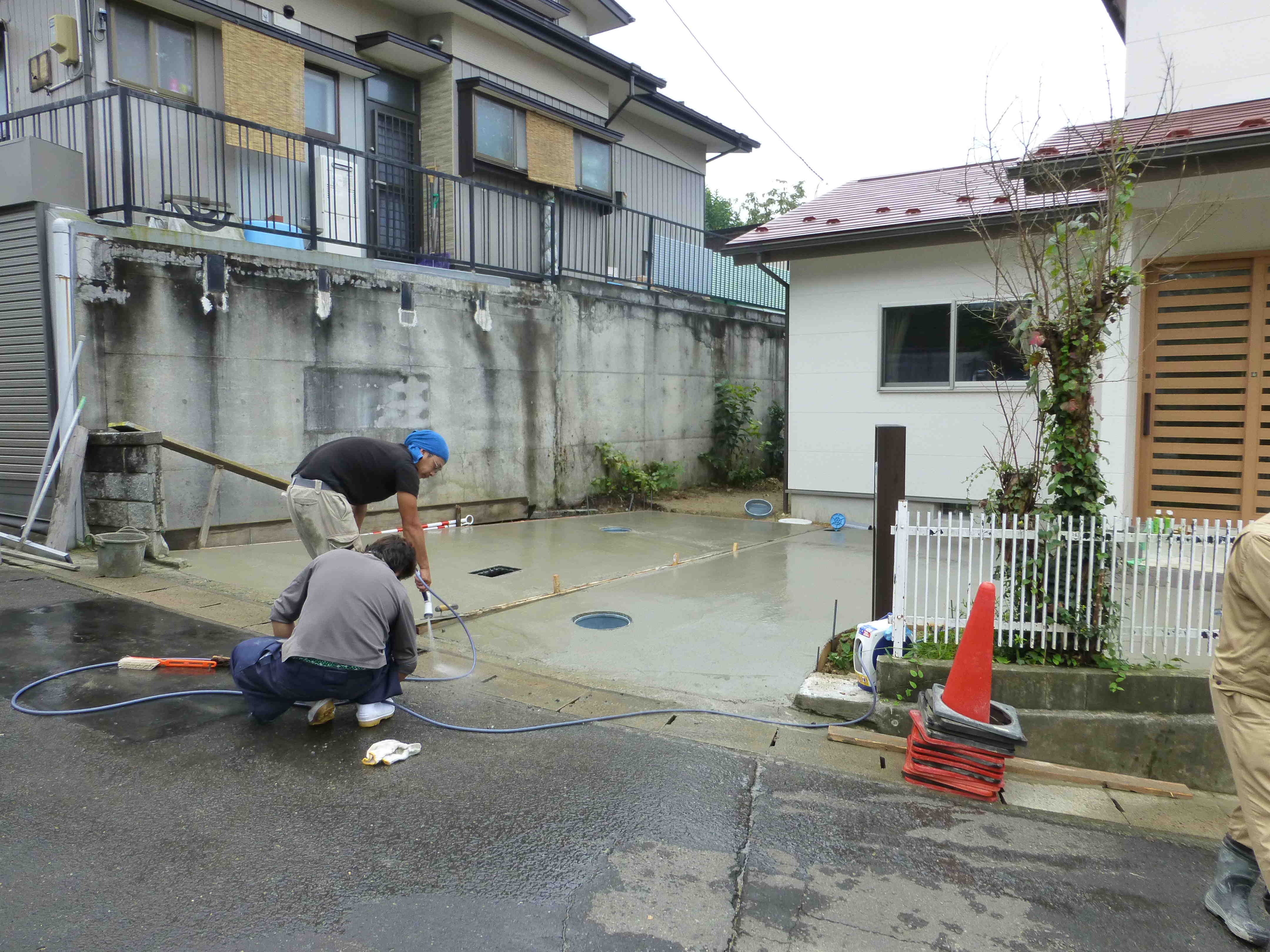 前の晩の雨が早く上がってくれて予定通り生コン打設が出来ました。生コンの予約をキャンセルすると一週間後になってしまうのです。