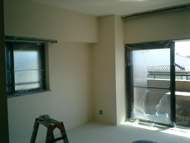 ビニールクロスを貼った壁天井にチャフウォールを塗布しています。