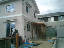 パーゴラと木製フェンス工事中 2008年10月30日 いつもブログをご覧いただきありがとうございます。 自然素材の家づくりとリフォームをお勧めしている㈱仙台エアサイクル住建の柏倉勉です。 先日、お引渡ししたお家の外構工事です。 駐車場、玄関アプローチのほかに、木製の目隠しフェンス&パーゴラ等を設置しています。 明日がお引越し予定。工事のほうも明日にはほぼ終わりそうです。 最後に こちら↓を押してくださいね。 ★人気ブログランキング投票★
