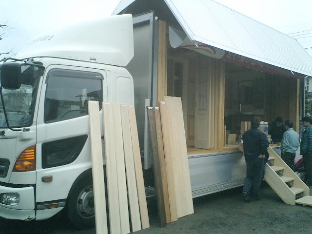 トラックに建材を乗せてやって来ました。