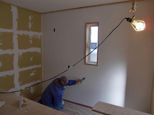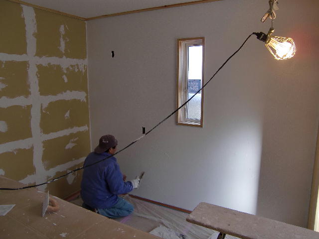 塗り壁が続きます。塗り壁が終わると、玄関の土間コンクリート打ちです。
