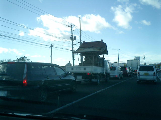 地鎮祭の帰りに変わったものを運ぶ車を見かけました。