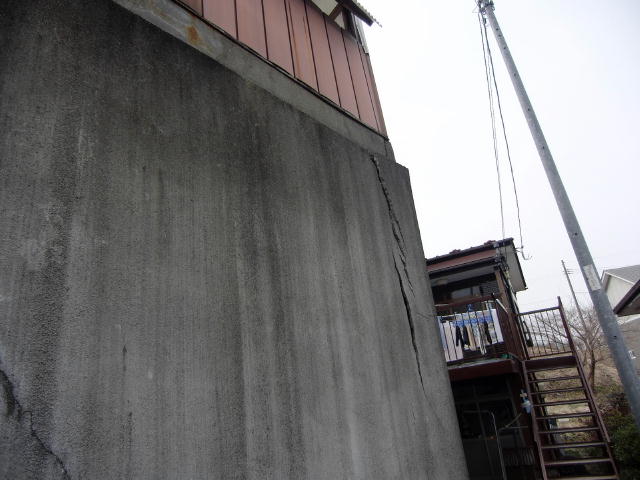 その後、ブロック塀の被害を受けたお家と、家や擁壁が傾いた現場を見てきました。