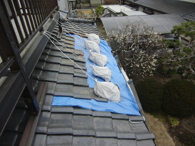 瓦の補修は全く目処が立たない状況ですが、雨漏りを放置する訳にもいきませんので・・・行ってきました。(3日連続でシート掛けです)
