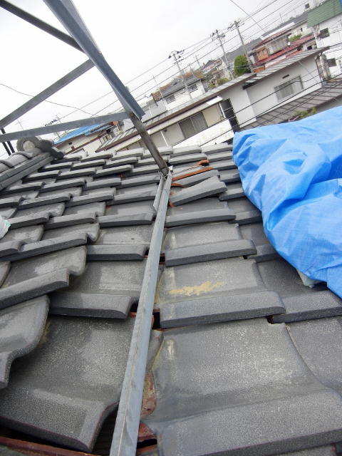 太陽熱温水器が乗っているのですが、そちらが揺すられた時に瓦がずれてしまったようです。