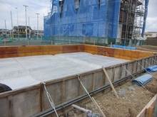 太白区の新築現場:基礎屋さんが入っています。型枠設置中。少しホッとしました。