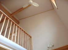 吹き抜けをつくり、内装を白系にしてみました。