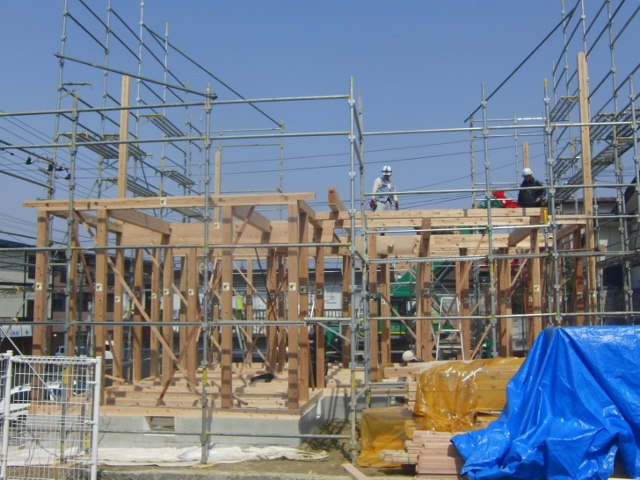 杉とヒノキ、無垢材で建て方の最中です(仙台市青葉区A)