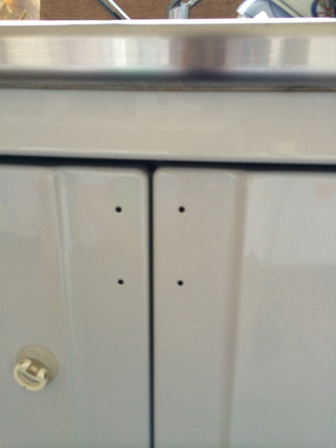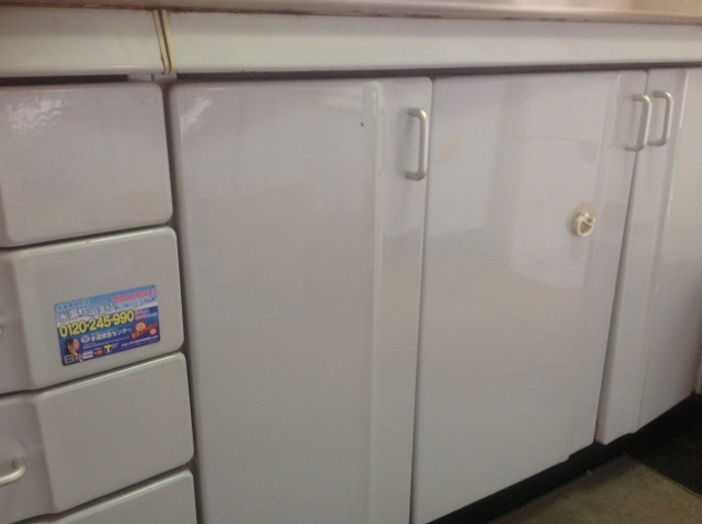 25年前のOB客様邸。当時設置したキッチンの取っ手が壊れてしまい、吸盤フック等でしのいできたそうですが、「別の取っ手をつけられませんか?」と聞かれました。