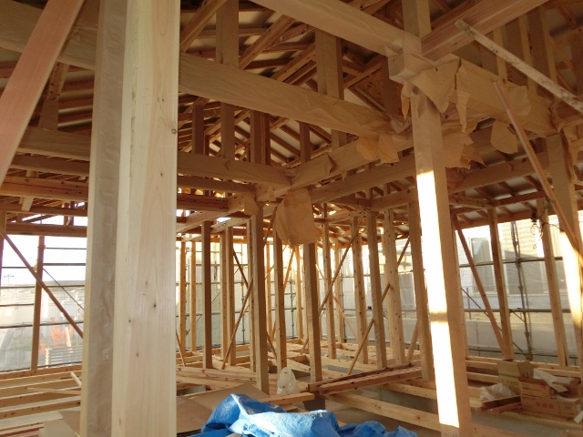 仙台市青葉区内で自然素材の平屋住宅建築中 2015年11月03日 現在、仙台市青葉区内で 自然素材の平屋住宅を建築しています。 平屋といっても面積が28坪もあるので、 結構大きいな~、という感じがします。 今回は柱をあらわしにする真壁の部分も多く、 会社に在庫していたヒノキの柱なども 使用させていただきました。 (通常はスギですが、差額はサービスです) これから外張り断熱を行い、 サッシや玄関ドアなどの取付に進み、 外部を塞いでいきます。 ご見学も可能ですので、 ご希望の方は当社までご連絡くださいね。