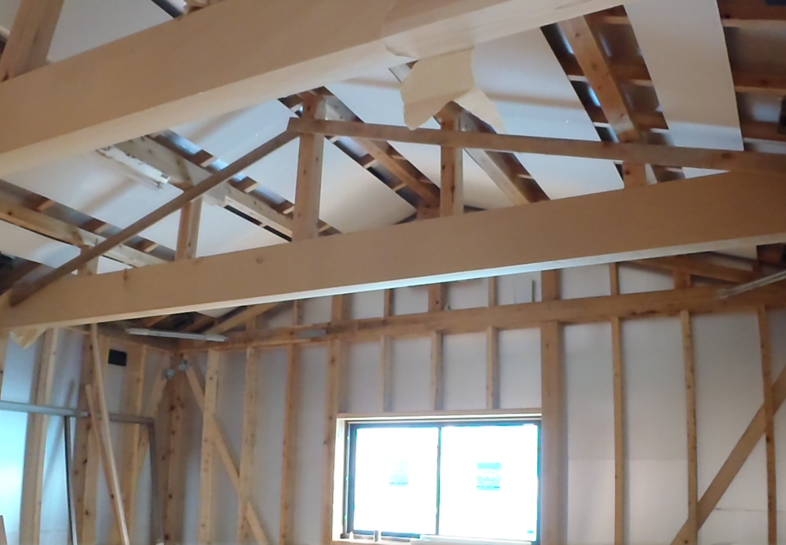 来週構造見学を行う現場はこんな感じです。 2015年11月21日 来週(11/28土)、大崎市三本木で 構造見学会を行います。 三本木といっても国道4号沿いで、 泉からも結構近い印象です。 今回のお家、一番の特徴と言えば、 「27帖の卓球ルーム」。 もちろん、27帖の中に柱はありません。 床も体育館仕様になっています。 完成してからも見ていただきたいと思いますが、 骨組みが見える段階でぜひご覧になって欲しいと思います。 ちなみに、、、一般の住宅です。