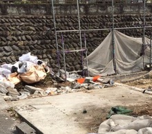 北側に3m近い石積み(不適格擁壁)があり、
