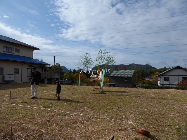 天気予報では午後15:00以降、降水確率が高くなっていましたが、幸い地鎮祭の時間帯はまだとってもいい天気。