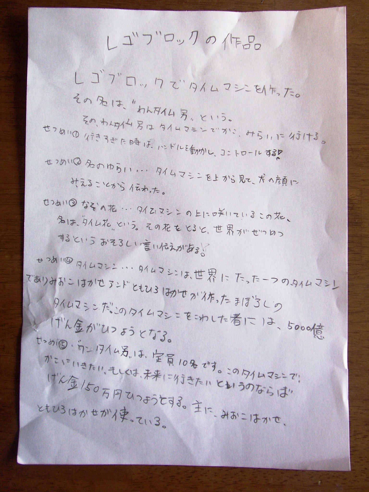 せつめい④ タイムマシンは、世界にたった一つのタイムマシンでありみおこはかせアンドともひろはかせ