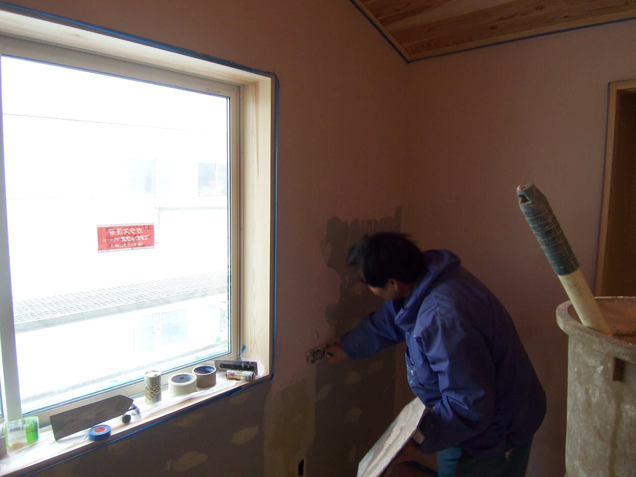 今回は外壁も左官工事、内部の壁も左官工事が多い。