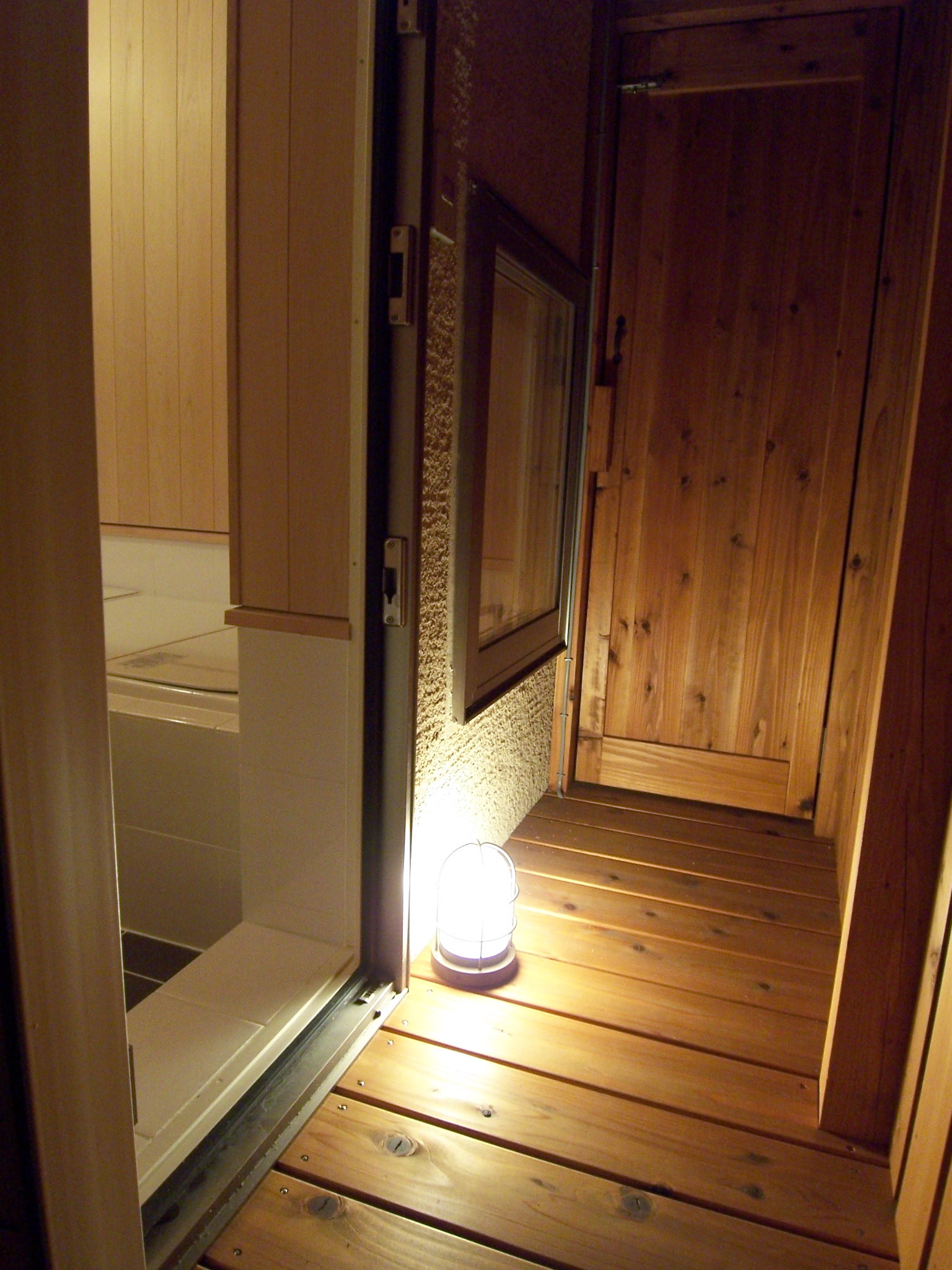 北側隣地までの90cmを板塀で囲って室内から眺められるよう、さらに出入りできるようにという計画へ変更。