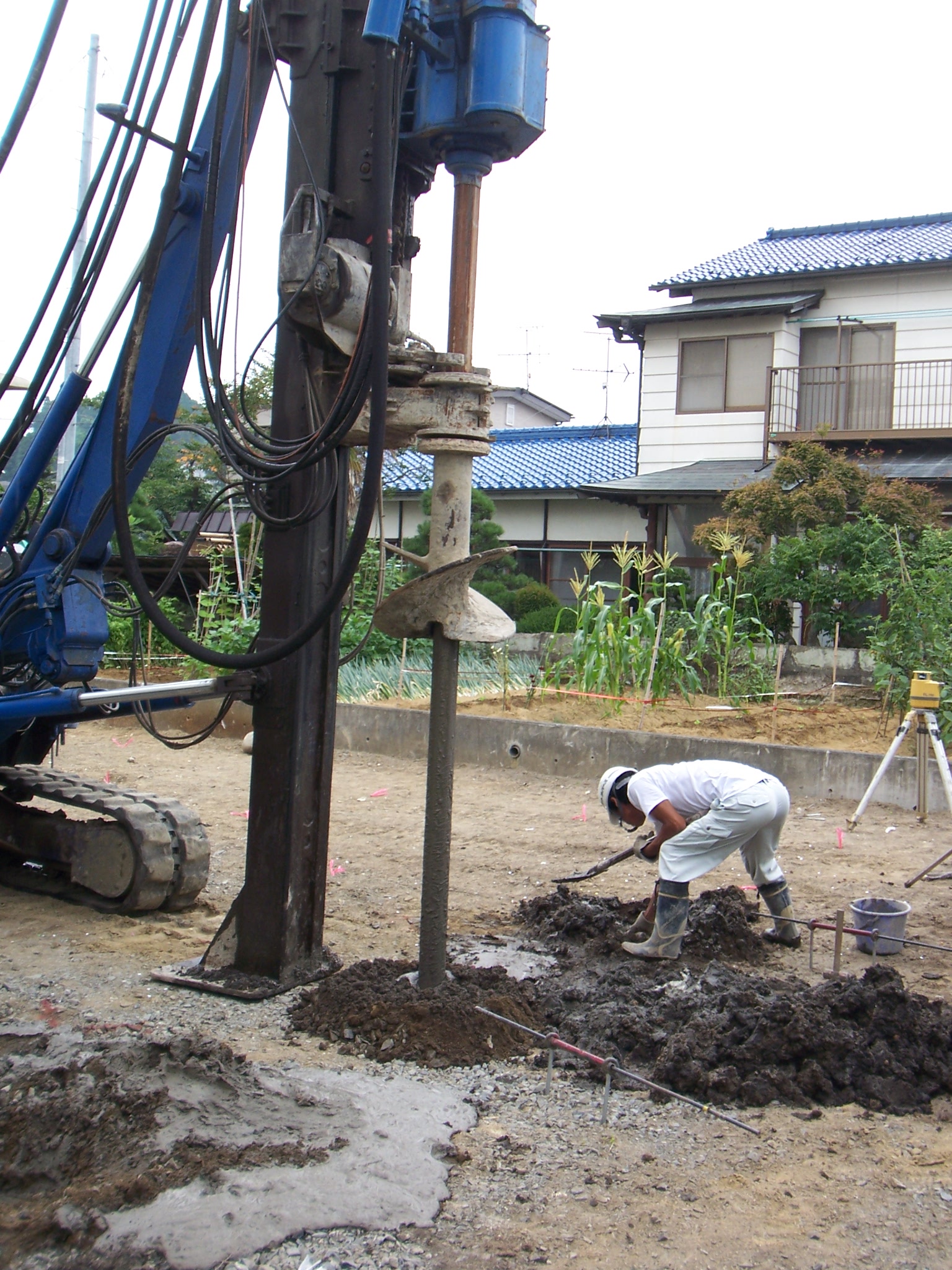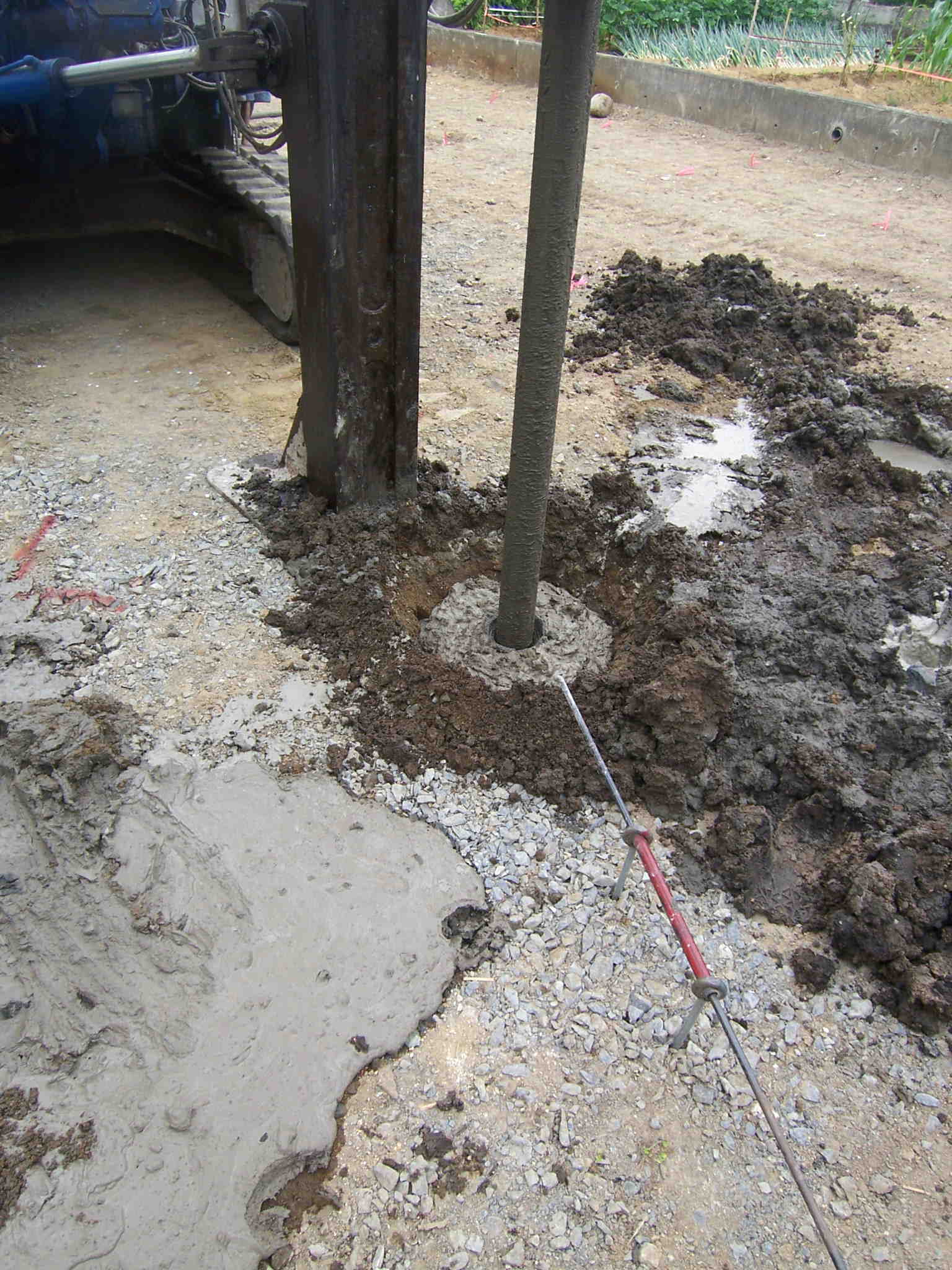 今回の現場では35本打ち込む予定。深さは3m~5m程度です。