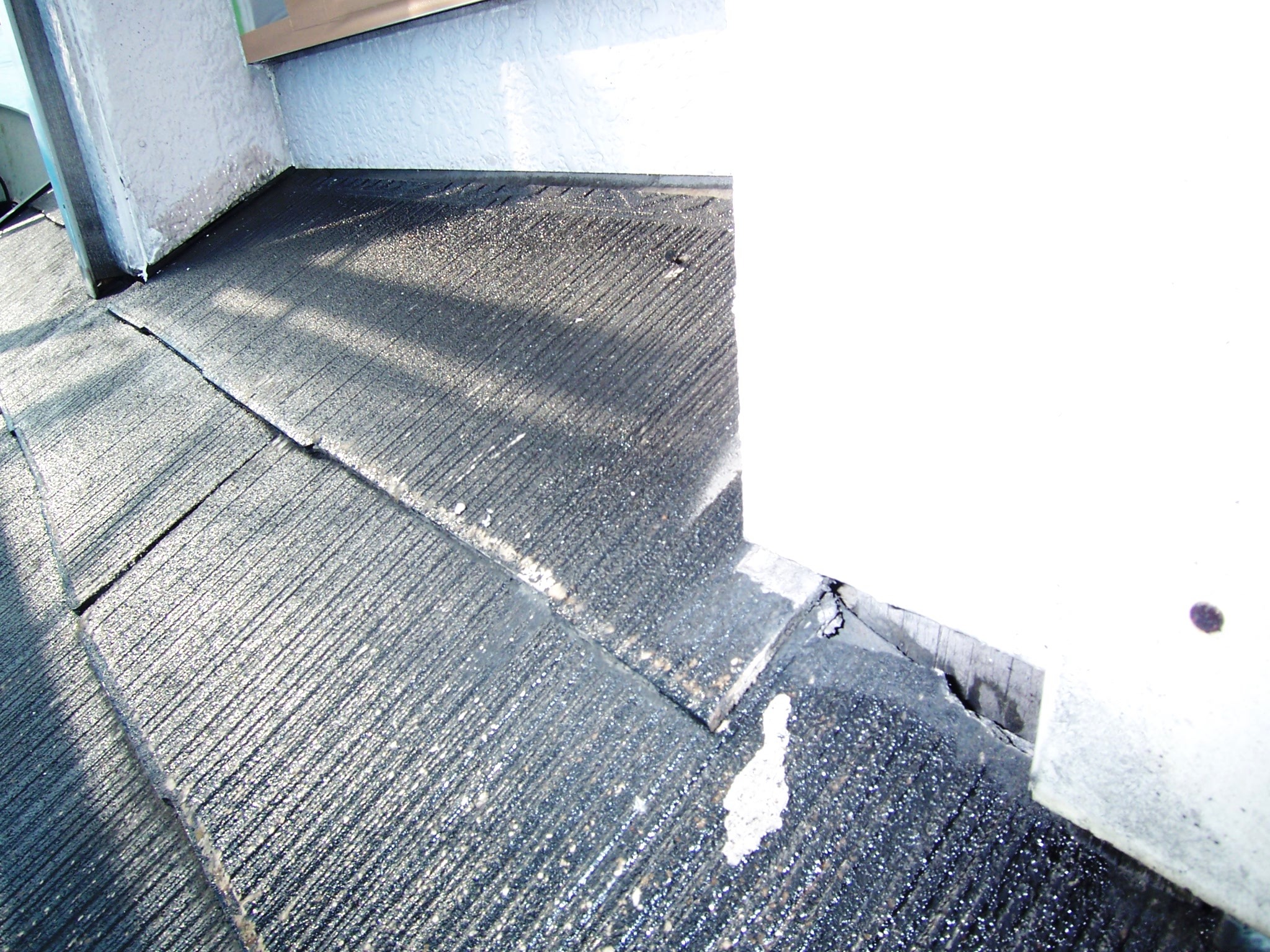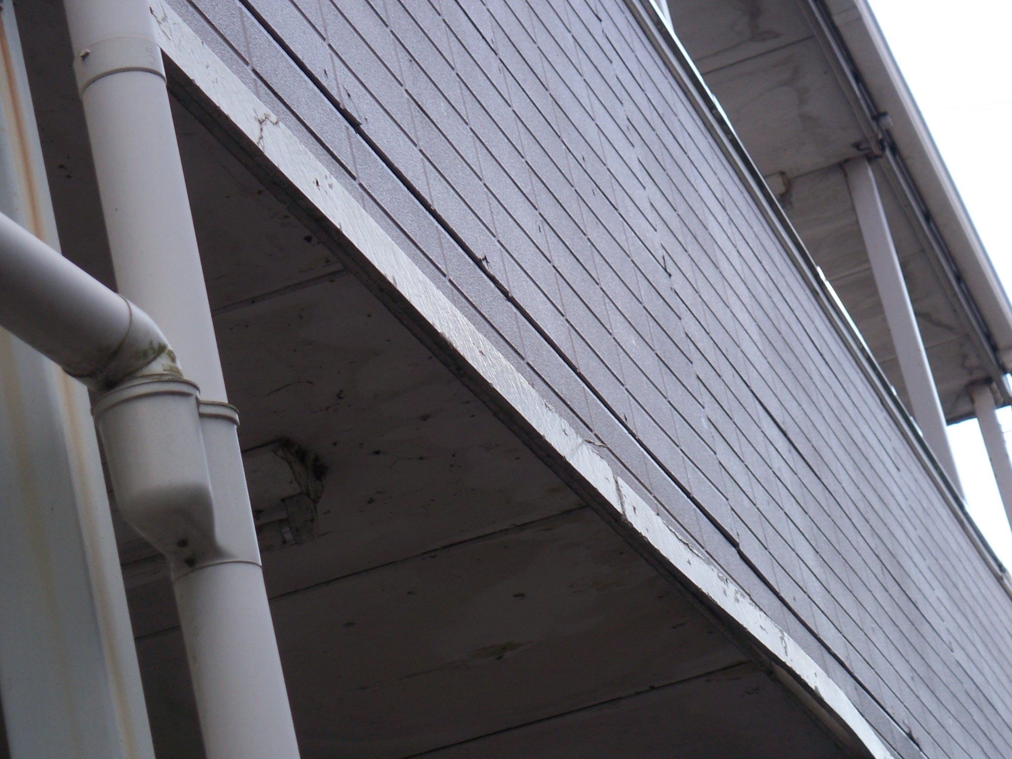 実際、軒がない外廊下部分はすっかり劣化。凍害を起こして剥がれ掛けていました。
