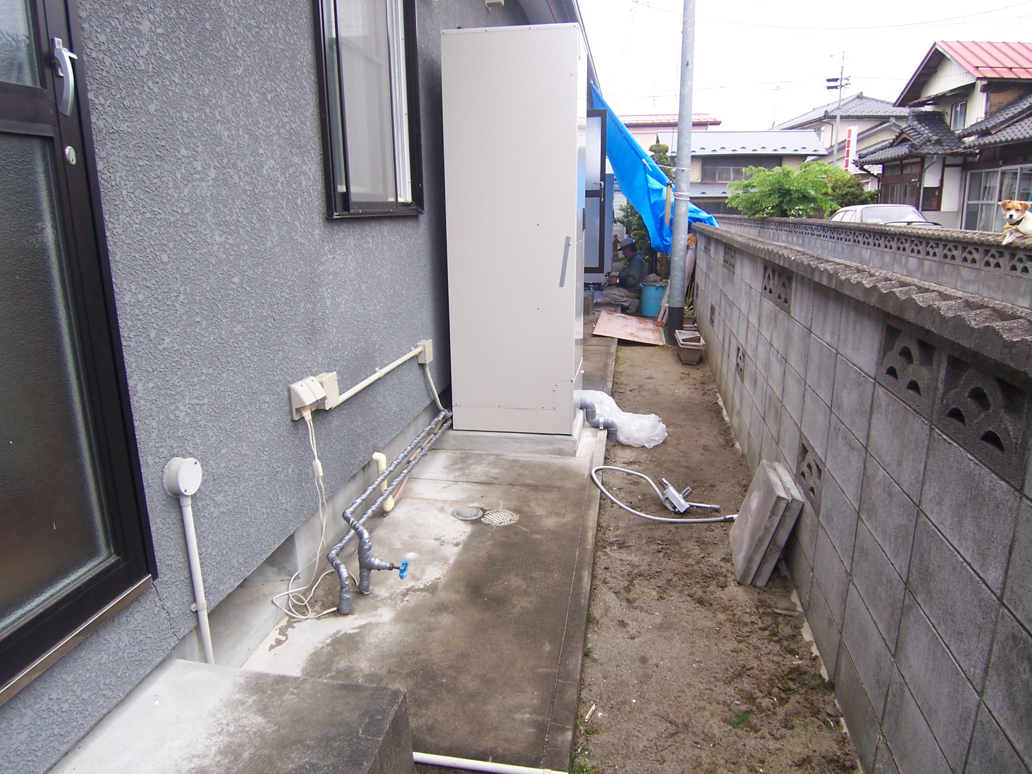 こちらのお宅は、元々電気温水器が入っていて、まだ耐用年数もきておらず、以前の電気温水器だと追い炊きの効率が悪かったので「差し湯」機能だけのタイプをつけていたのです。