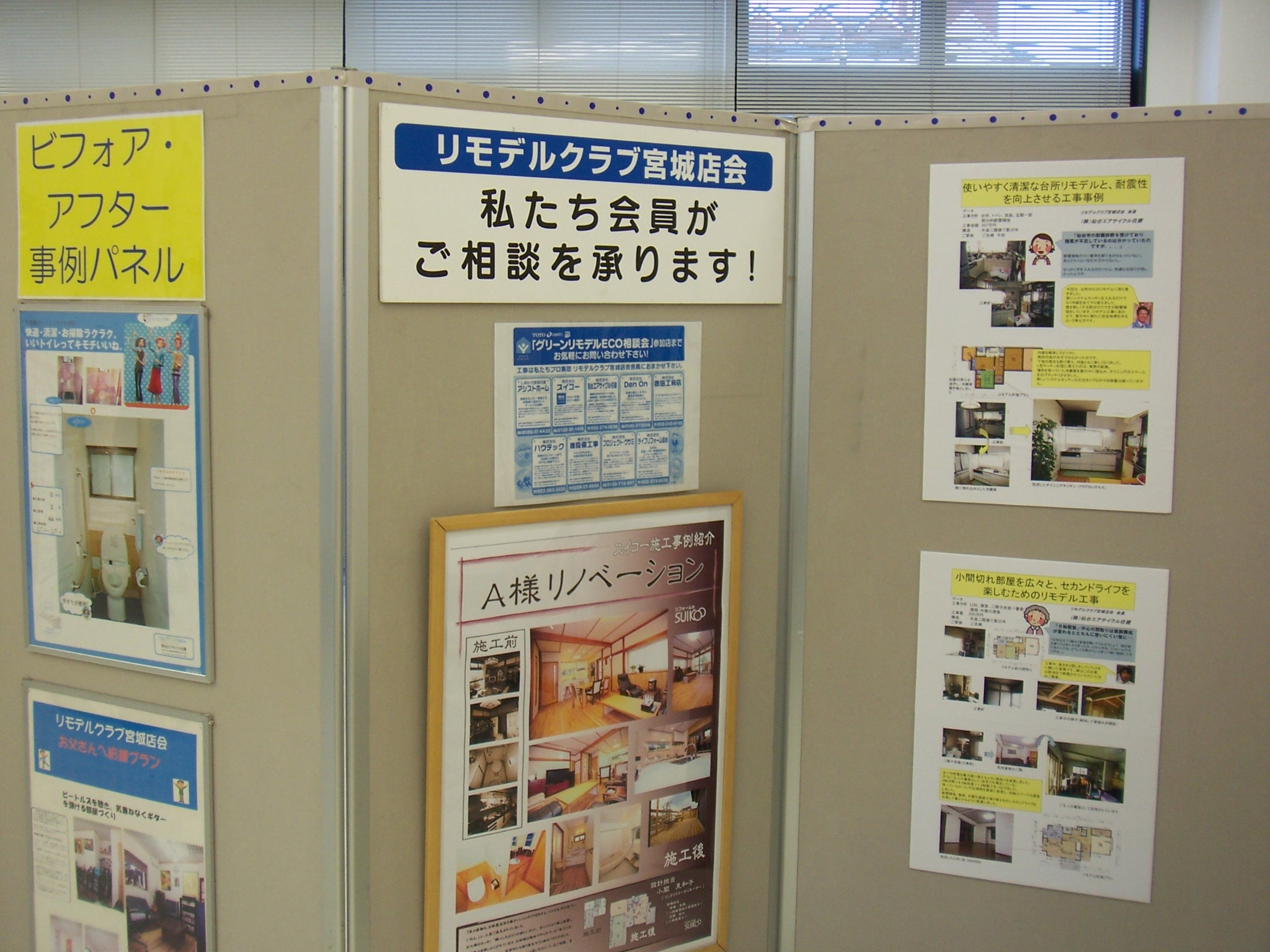 住宅リフォーム会社9社(リモデルクラブ宮城店会)が合同で開催し、TOTO、大建工業、YKKapのメーカー3社の協力をいただいています。