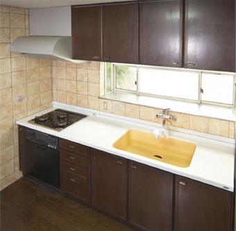 現在のキッチンのキャビネット(収納部分)をそのまま残して