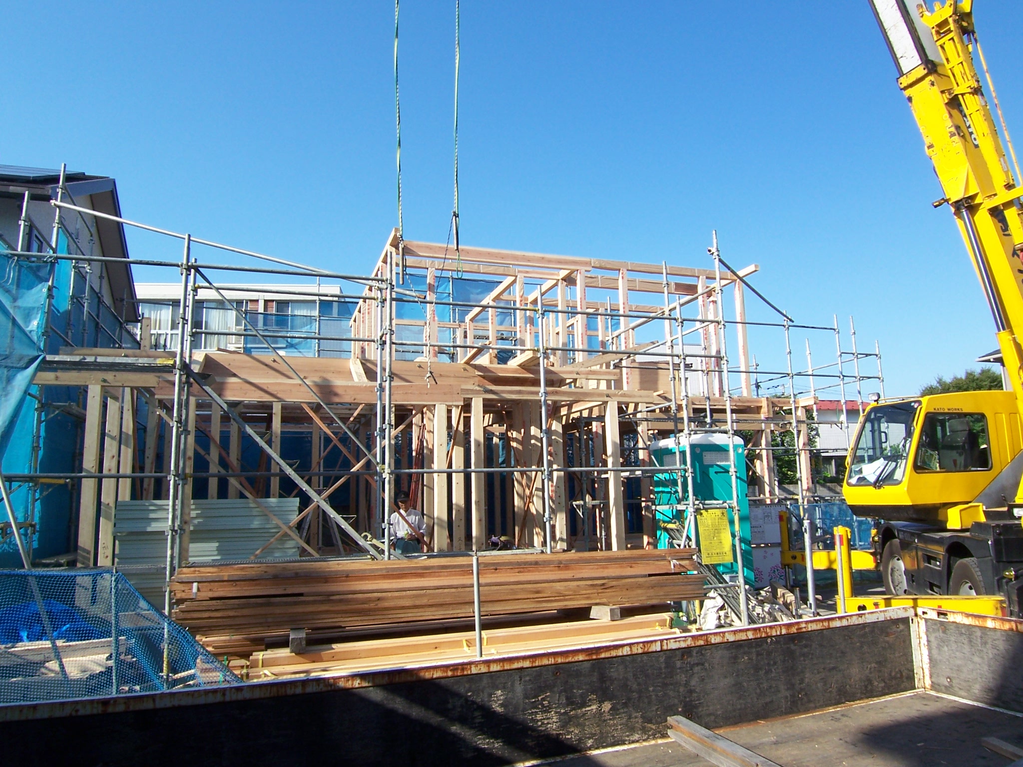 「棟上げの日に現場へ行って大工さん達に御挨拶と、お菓子でも差し上げようと思って。」