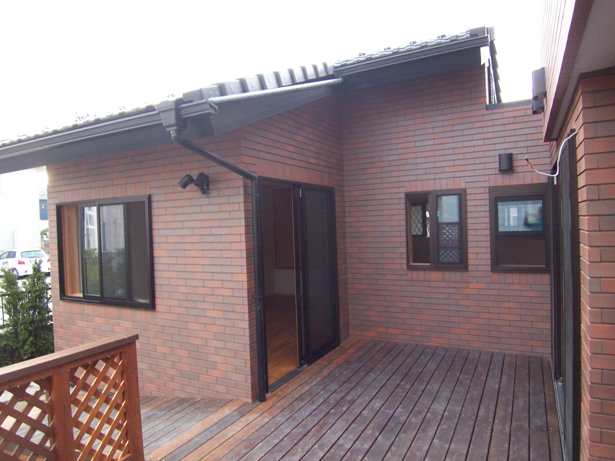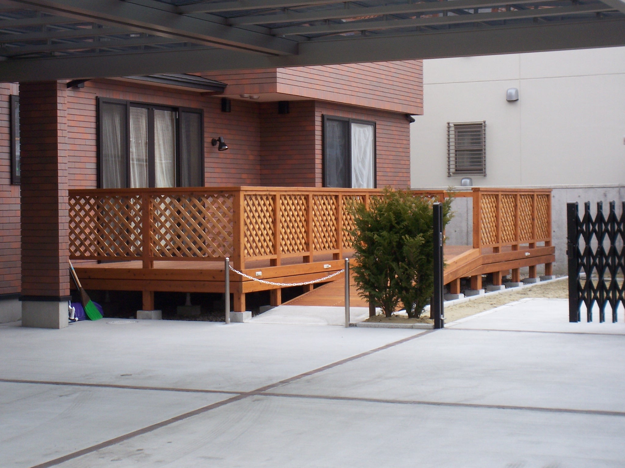 ↑〈施工前:この立派なウッドデッキの部分に増築します。〉
