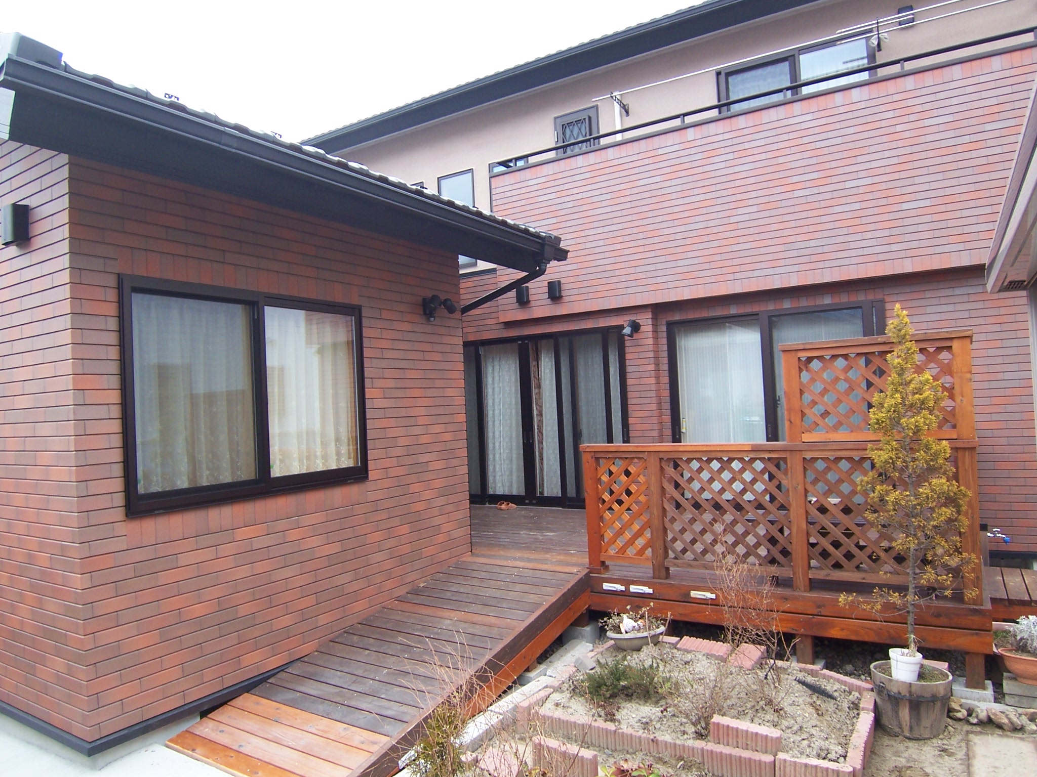 渡り廊下的に増築部分を持ち出して、中庭(ウッドデッキ)を設けることで