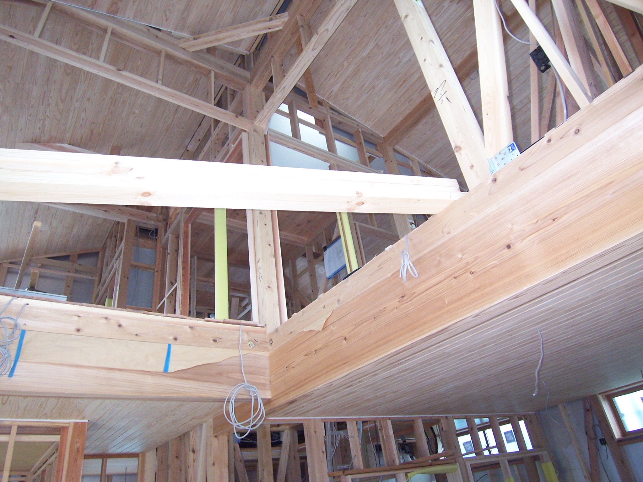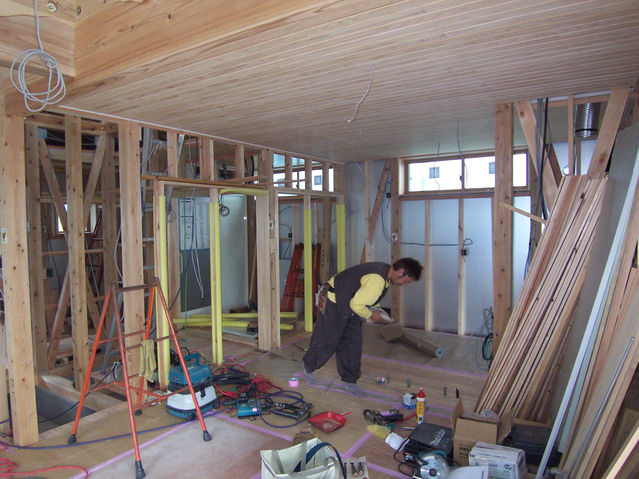 さて、内部はというと、大工さんが天井、床の板を張っております。