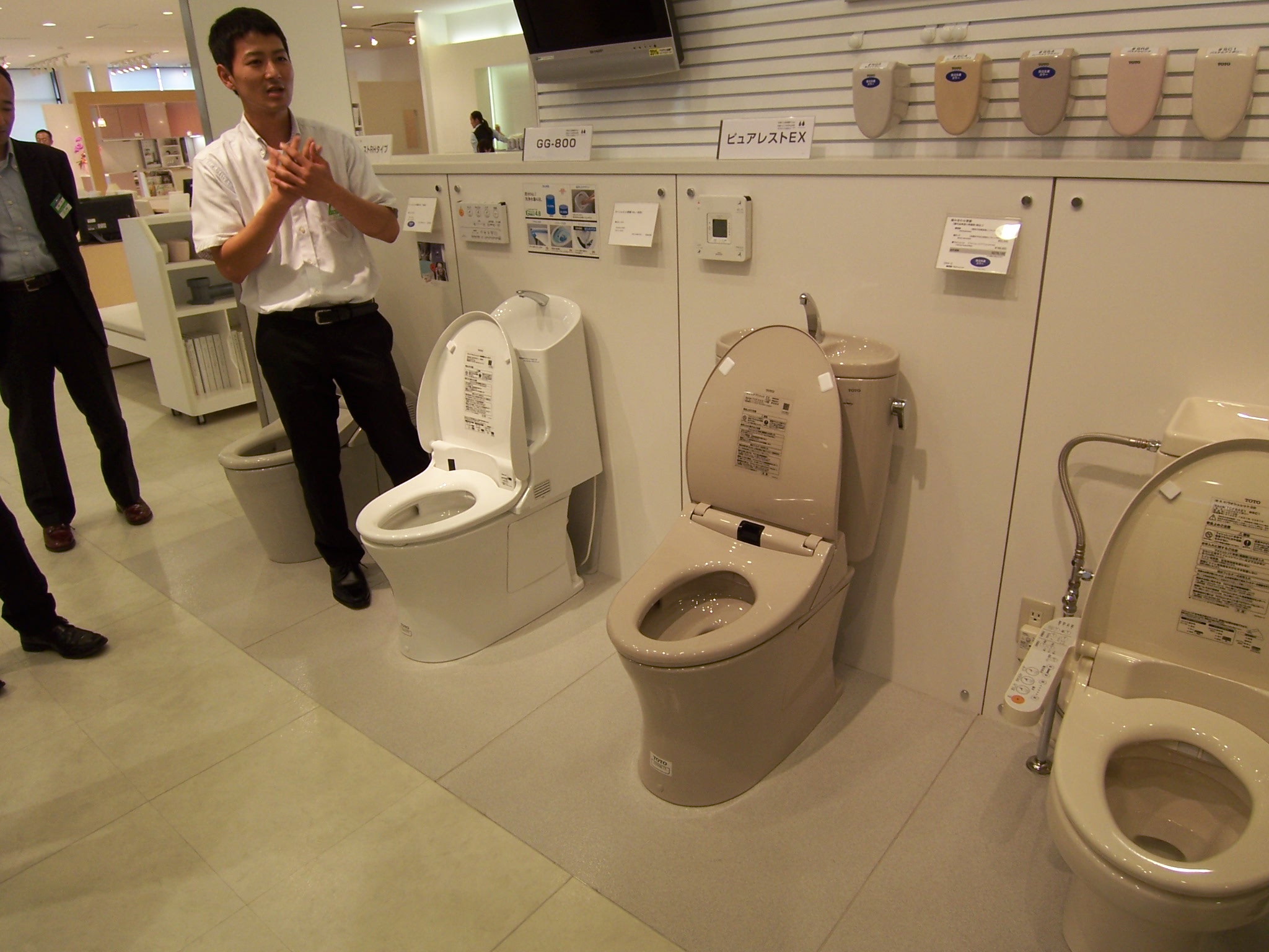 4.8リットル 2010年07月06日 節水トイレもここまで来たか。と言う感じになってきました。 以前にもご紹介したTOTOの新製品トイレです。 来月からはさらに種類が増えて発売されます。 さらに、トイレ以外の水回り(キッチン、お風呂、洗面)も含め全てに新商品。 力が入ってますね。 今日はその新商品の勉強会に参加してきました。 レクチャーを受ける面々↓ こちらが噂の4.8リットル製品群 シェアはまだまだながら、使いやすさを追求しているキッチン↓ じっくりと見たい、説明して欲しいという方はぜひこちらの催しへご来場を!