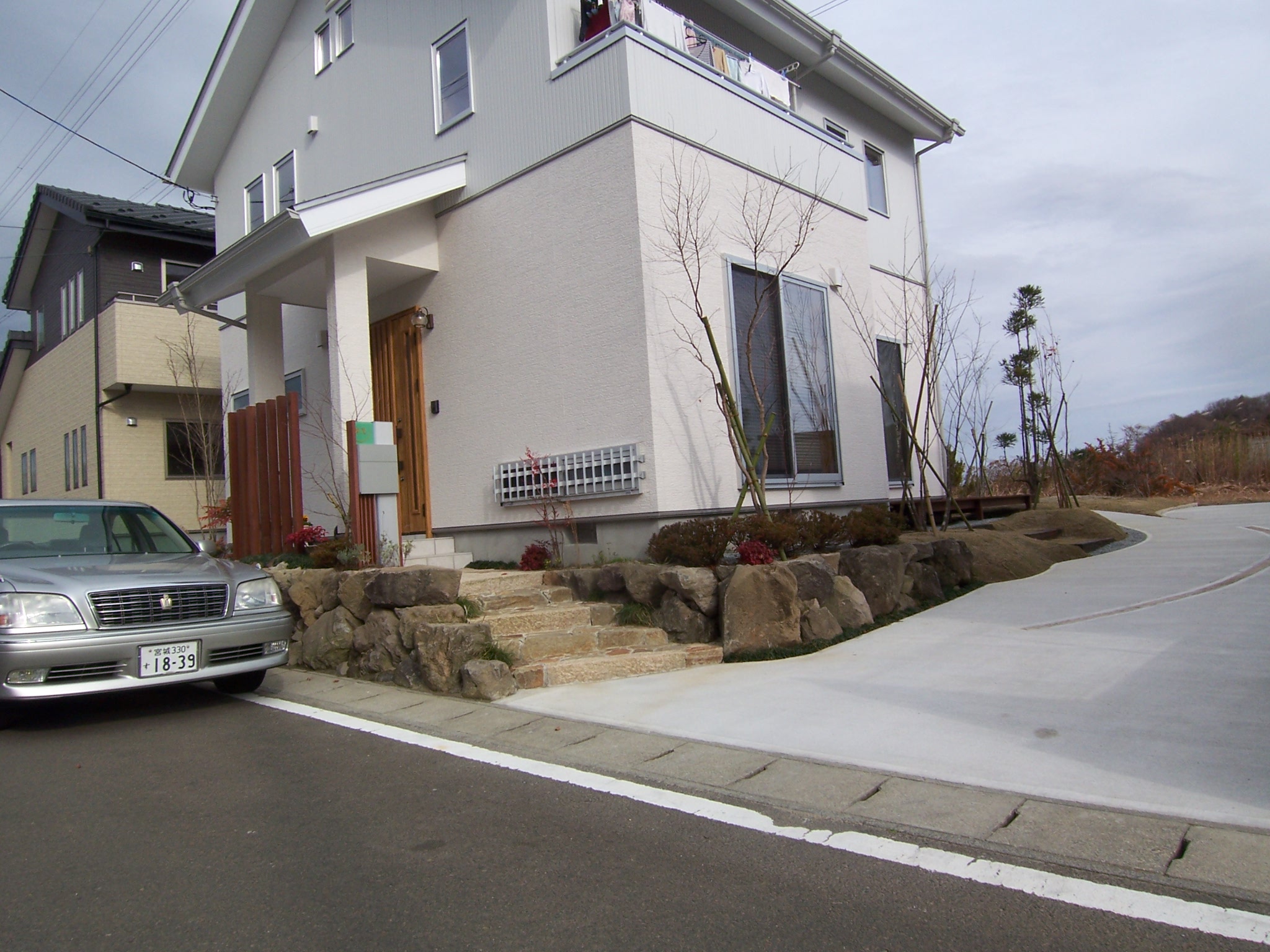外構工事はご親戚の造園屋さんが手がけたそうです。なかなか手が込んでいます。