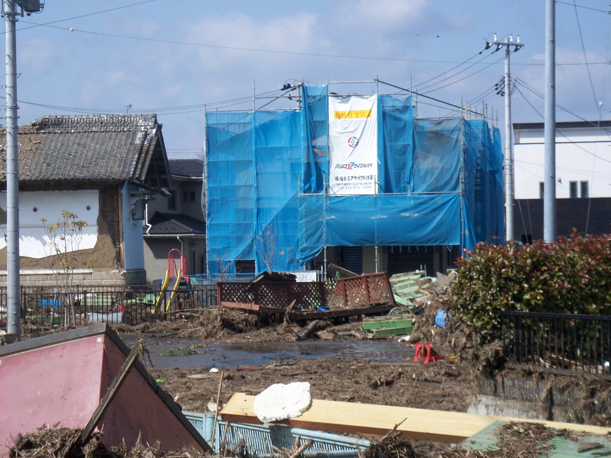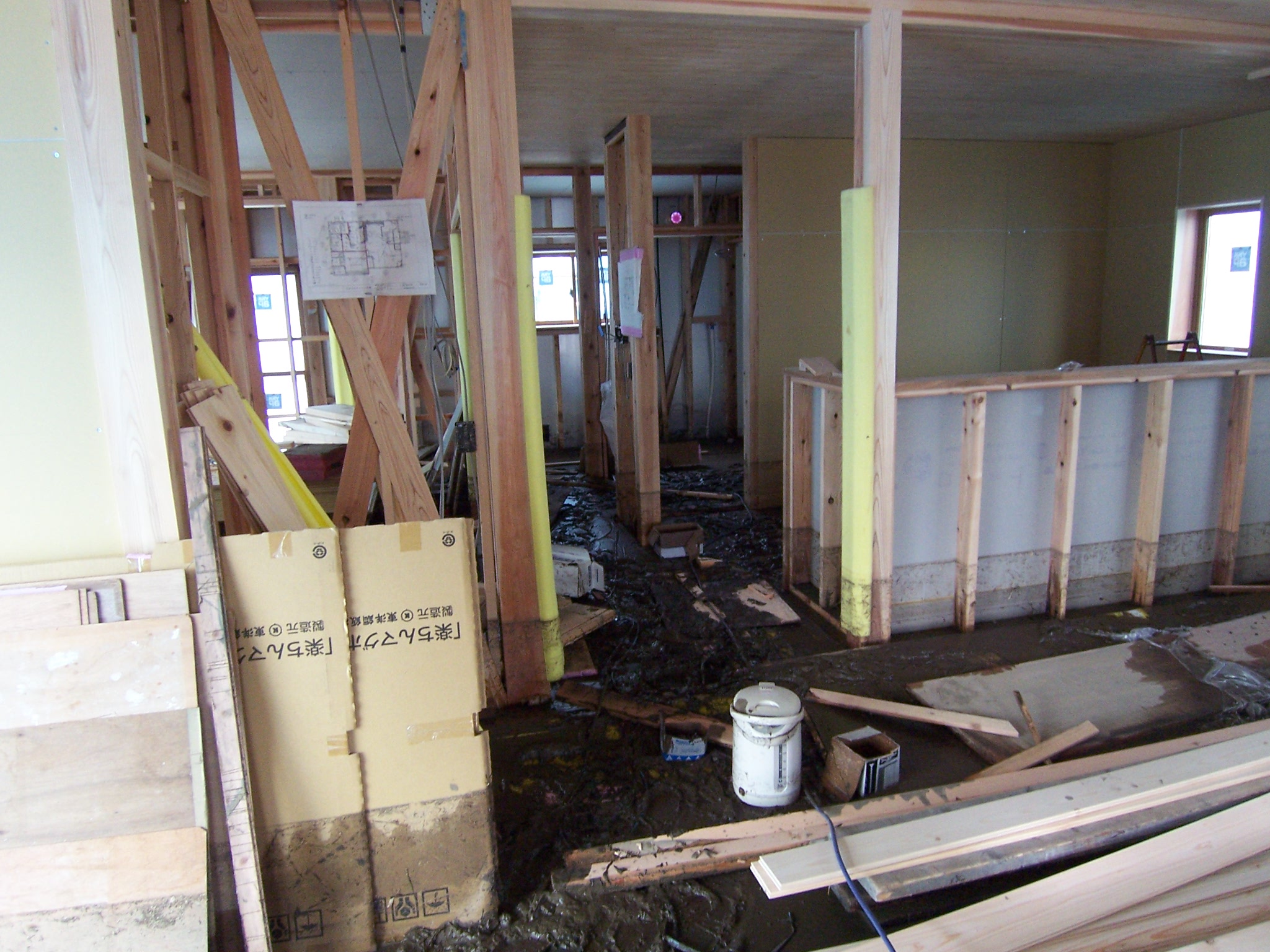 《津波に襲われた現場。泥は床上まできたが損傷はありませんでした 3/12撮影》