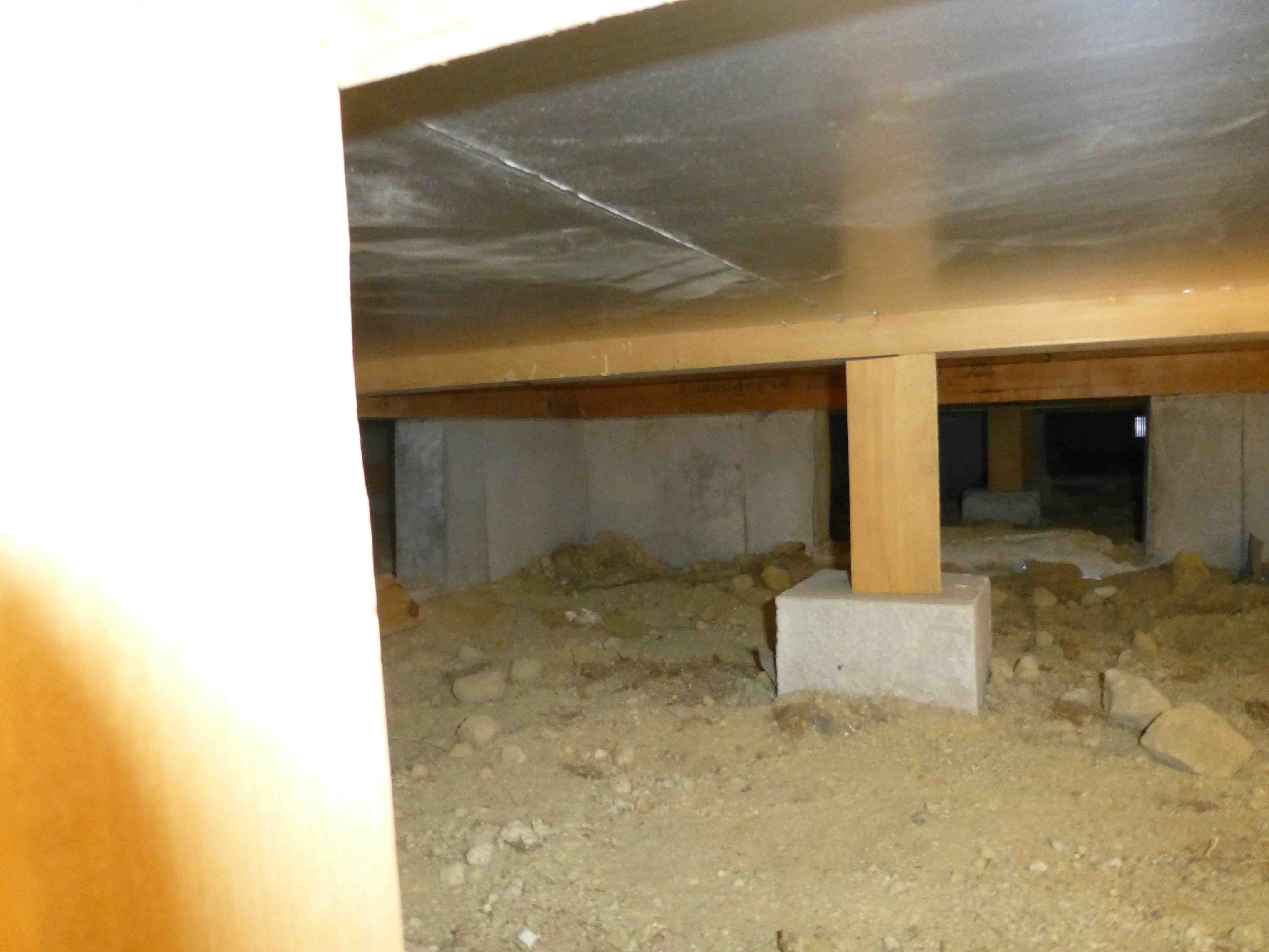 いざ床下点検口から潜ってみると、、、既存の断熱材に隙間が多く、断熱の機能が果たされていないことが判明。これではご主人が「寒い」と言うのも分かります。
