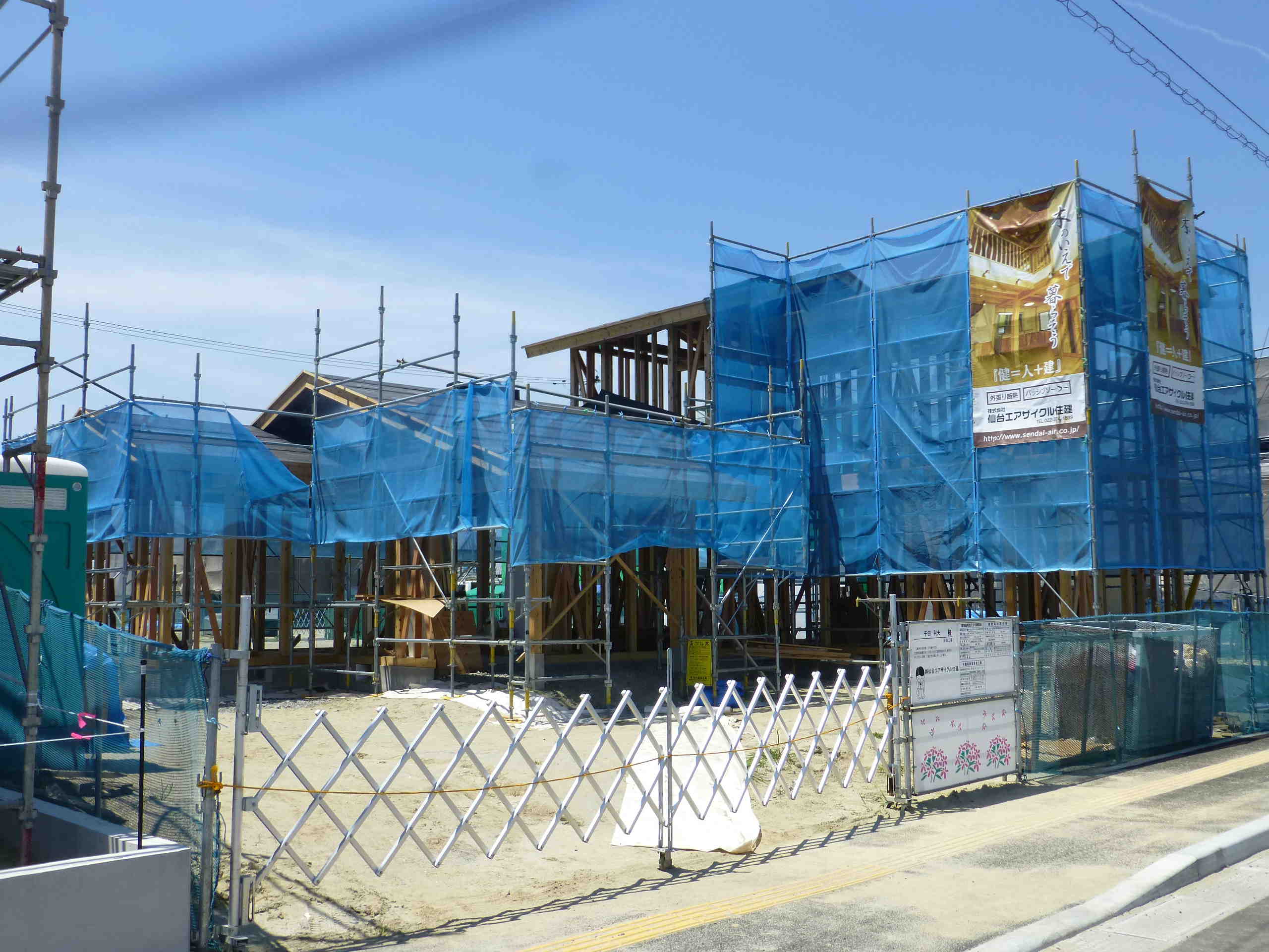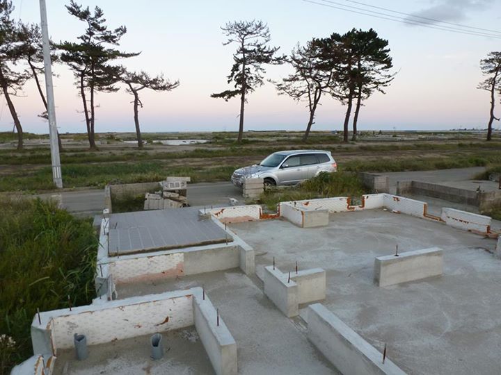 住宅再建中!2 2015年07月12日 岡田に新築中のお家は、津波で流されてしまったお家の再建工事です。 おととし11月に再建する家の建築をお願いしたいと依頼を受けた際に、被災した現地を見てきたときの写真です。 再建中の現場は野地が出来て明日中間検査となります。
