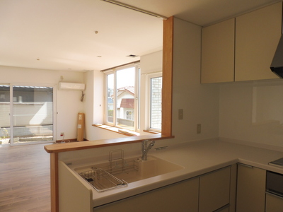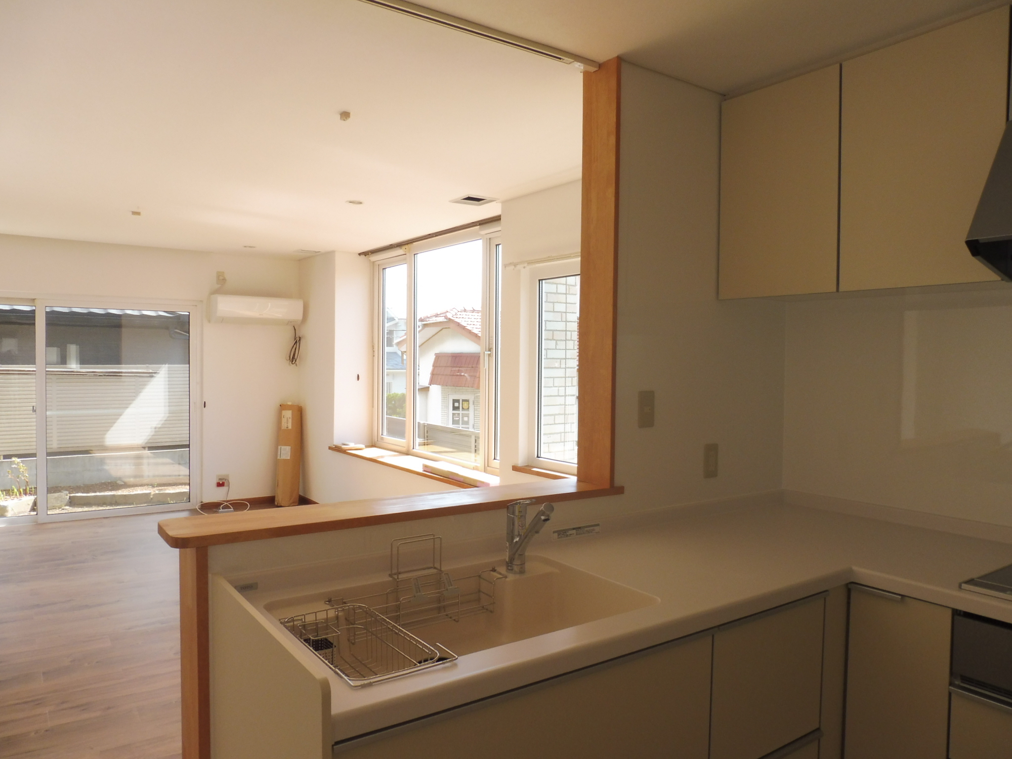 北側の壁に向いていたキッチンは南向きの対面式へ。明るく調理が出来そうです。