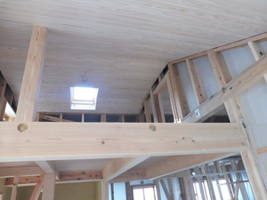 二階は勾配天井とロフトのある広々空間。