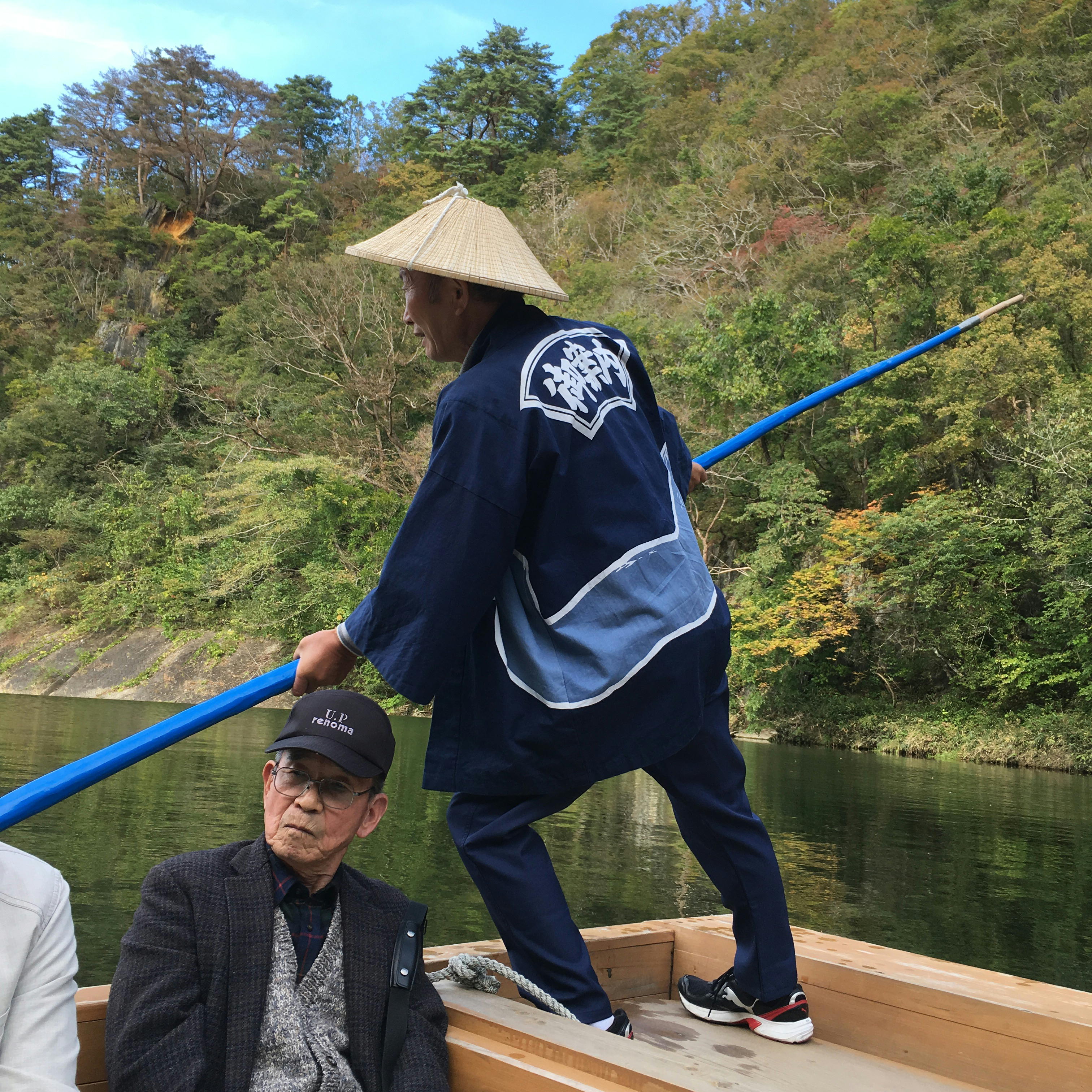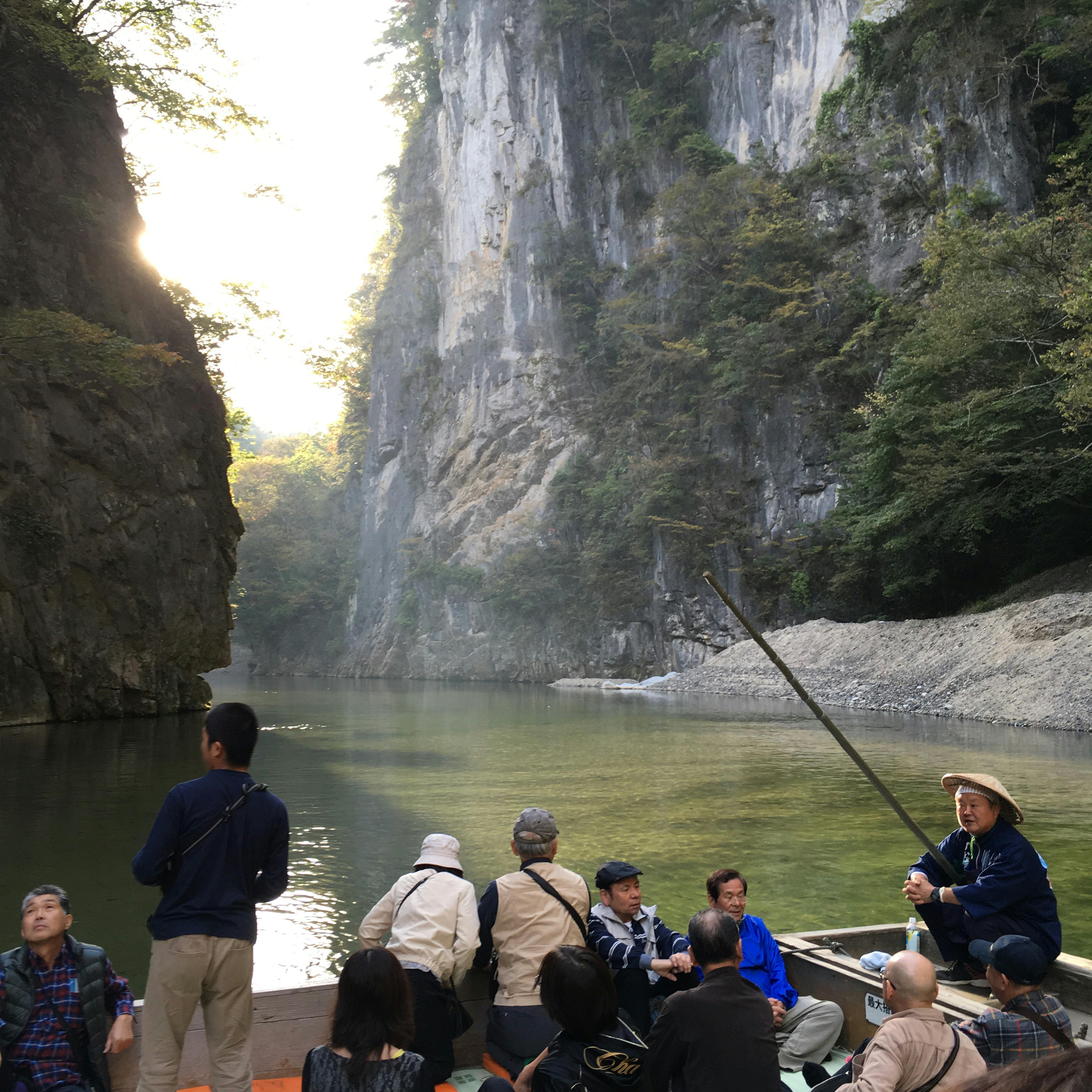 数年前に最上川の舟下りが好評だったのでと企画しましたが、最上川の舟下りがエンジン付の船だったのに対してこちらは船頭さんが一人で竿を押しながら進むゆったりしたもの。数々の奇岩に名前が付いていてその云われなどを聞きながらゆっくりした時間を過ごすことができました。