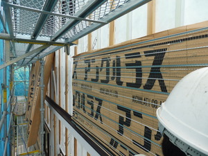 なんどか採用している「白州そとん壁」です。今一番ポピュラーなサイディングに比べるとだいぶ手間の掛かる工法なのですが、化学的な成分を含まないと言うことが一番のメリットかと思います。