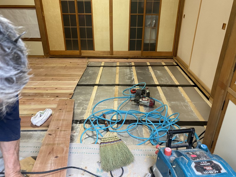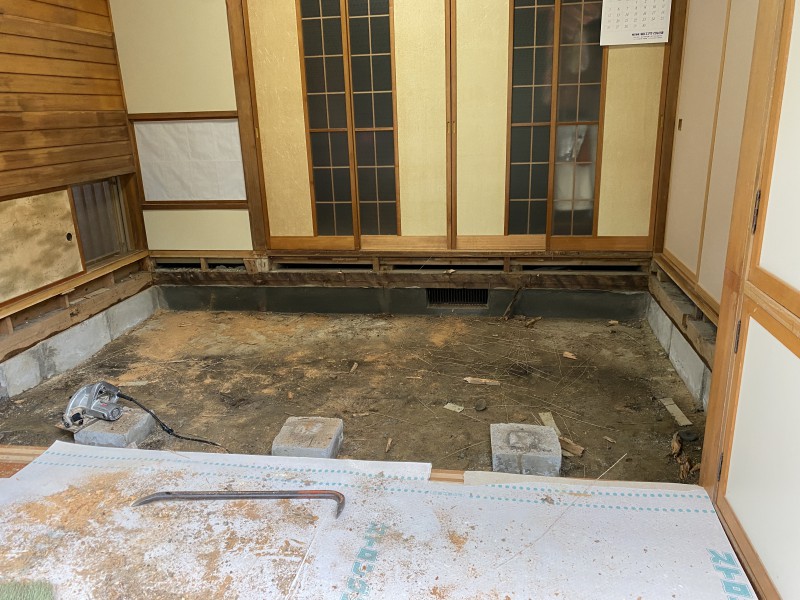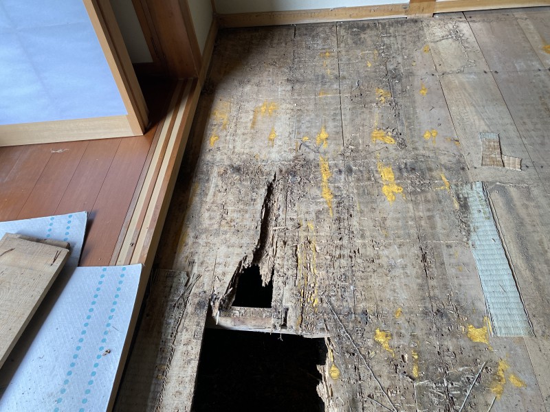 畳下の板がすっかりシロアリに食われていました。おそらく根太や大引も、、、