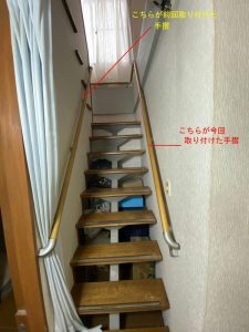 そのときの工事で手摺を設置していたのですが、今回は手摺のついていない壁にも手摺が欲しいというご希望。