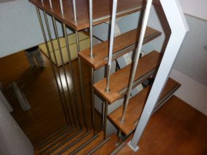 その当時のリフォームでは、二階を教室とするために一階リビングにある階段を生徒さんとご家族の動線が交わらないよう仕切る工事を行っています。