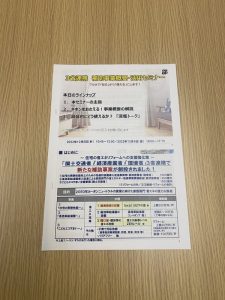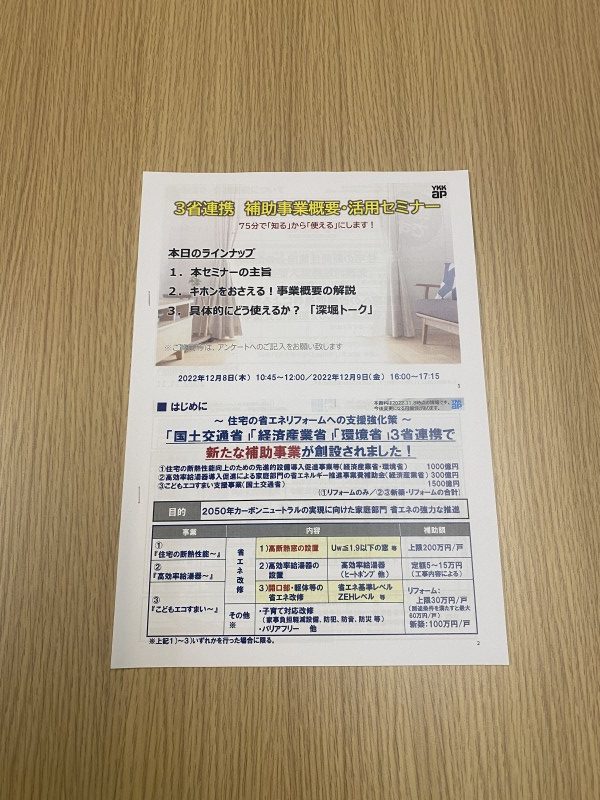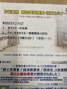 講師はサッシメーカーのYKKAPご担当者様。補正予算で住宅の省エネルギー対策(リフォーム工事)に対して、史上最大の額の補助金がついたのです。