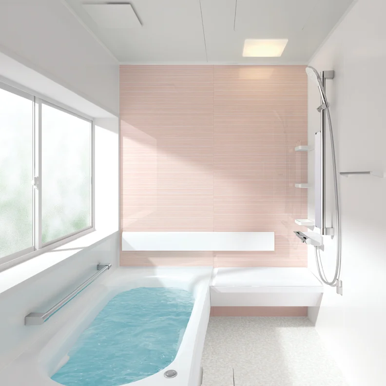 座ったまま浴槽に移れるベンチ付のタイプを選定しました。ショールームで実際の商品をご確認し、手すりの位置もチェック。
