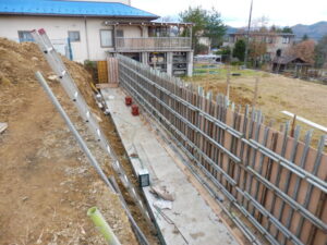 ※背の高い基礎、通常の基礎より深く掘り込むのでこう言います - 駐車場を作るために大きな造成費がかかる