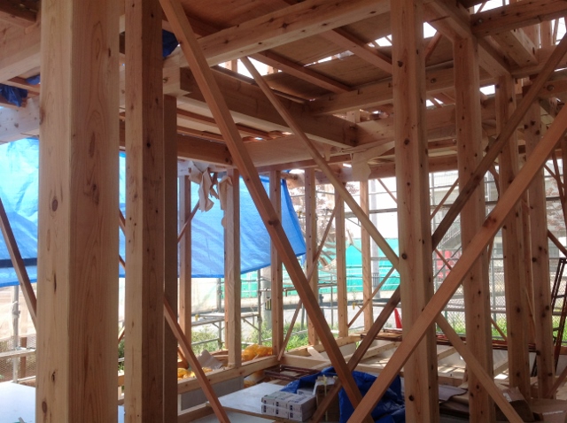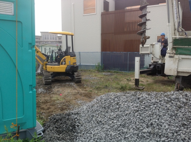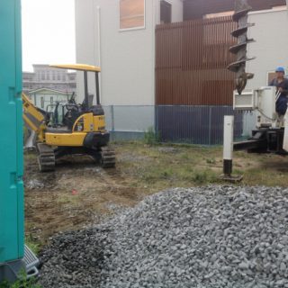 工事中の一コマです。敷地の地耐力が弱かったため、地盤改良を行いました。今回はお施主さんの希望によりハイスピード工法(砕石パイル工法)を採用しました。杭による改良工事に比べ地震と液状化に強いと言われています。さらに健康に配慮し、埋炭(炭を地面に埋めることによりマイナスイオンを発生させる)もセットで実施しました。