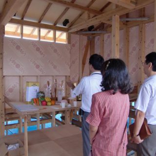 「ここ(見学先の家)の土地も購入候補として考えていたんです。それで、たまたま通りかかったら工事していて、それでネットで検索して申込みしてみたんです。」
